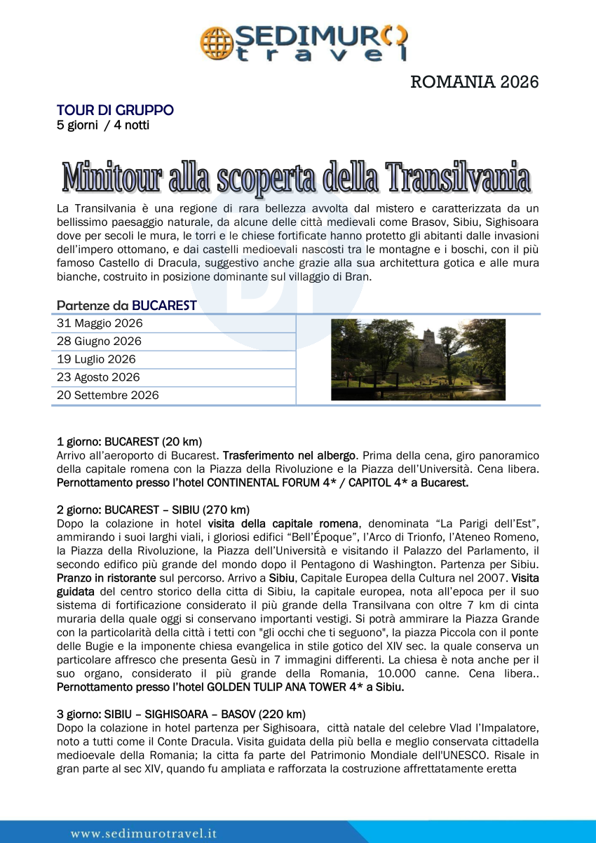 Minitour alla scoperta della Transilvania da Bucarest 5 giorni