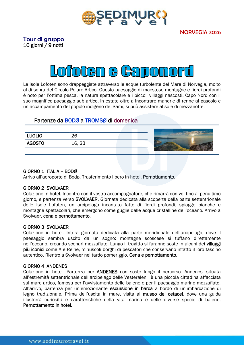 Lofoten e Caponord da Bodo a Tromso 10giorni