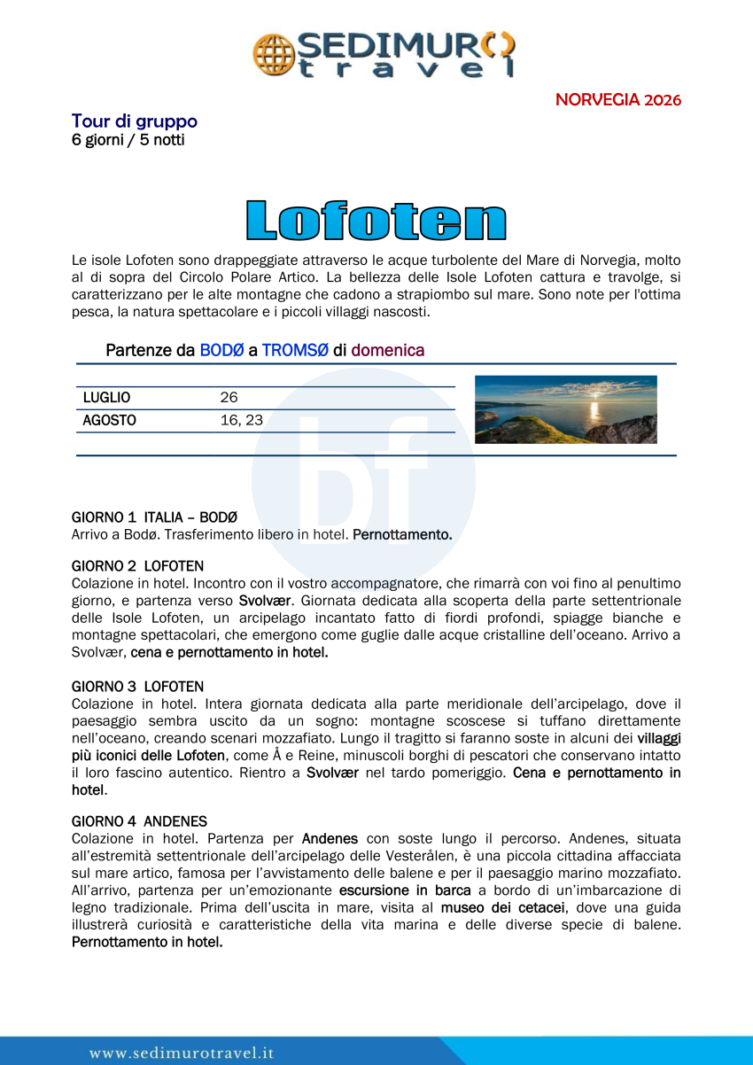 Lofoten da Bodo a Tromso 6 giorni