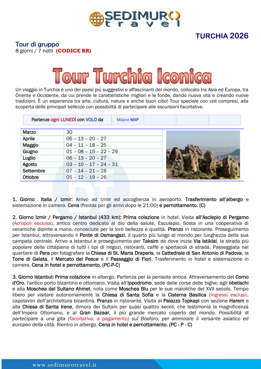 Tour Turchia iconica con volo da MXP ogni lunedì 8 giorni