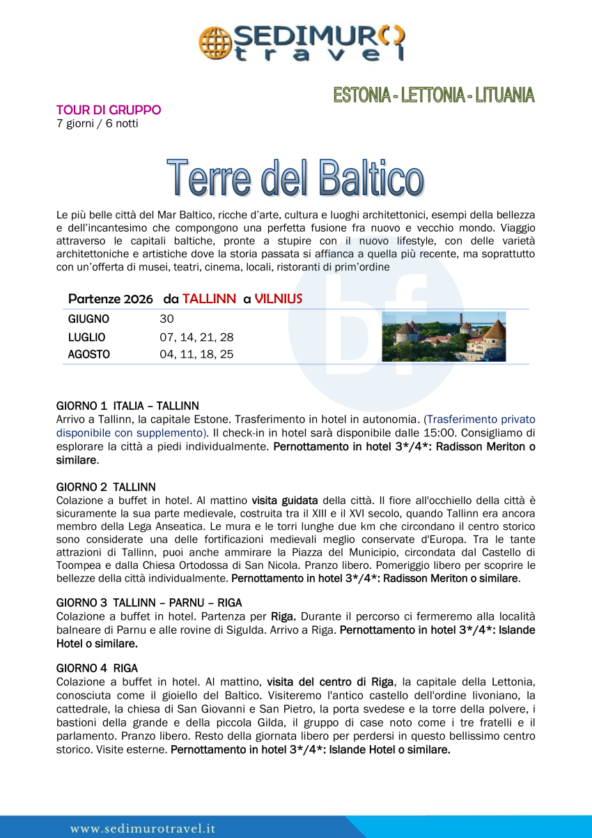 Terre del Baltico da Tallinn a Vilnius 7 giorni